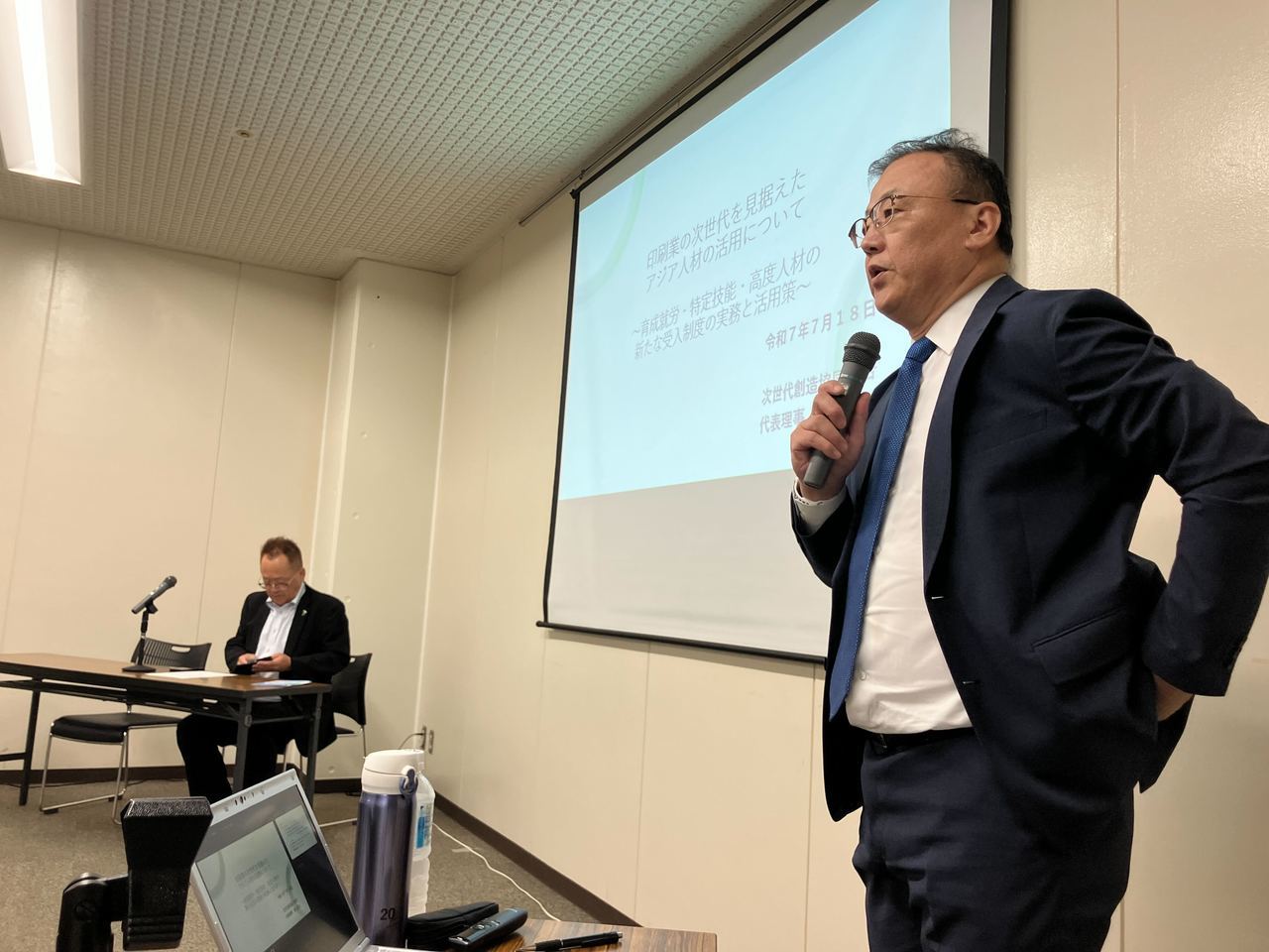 | 2025/07/18 | 宮城県仙台市にて、印刷関係展示会「SOPTECとうほく 2025」が行われ、弊組合代表香山が、「印刷業の次世代を見据えたアジア人材の活用について」というテーマで講演を行いました。 |